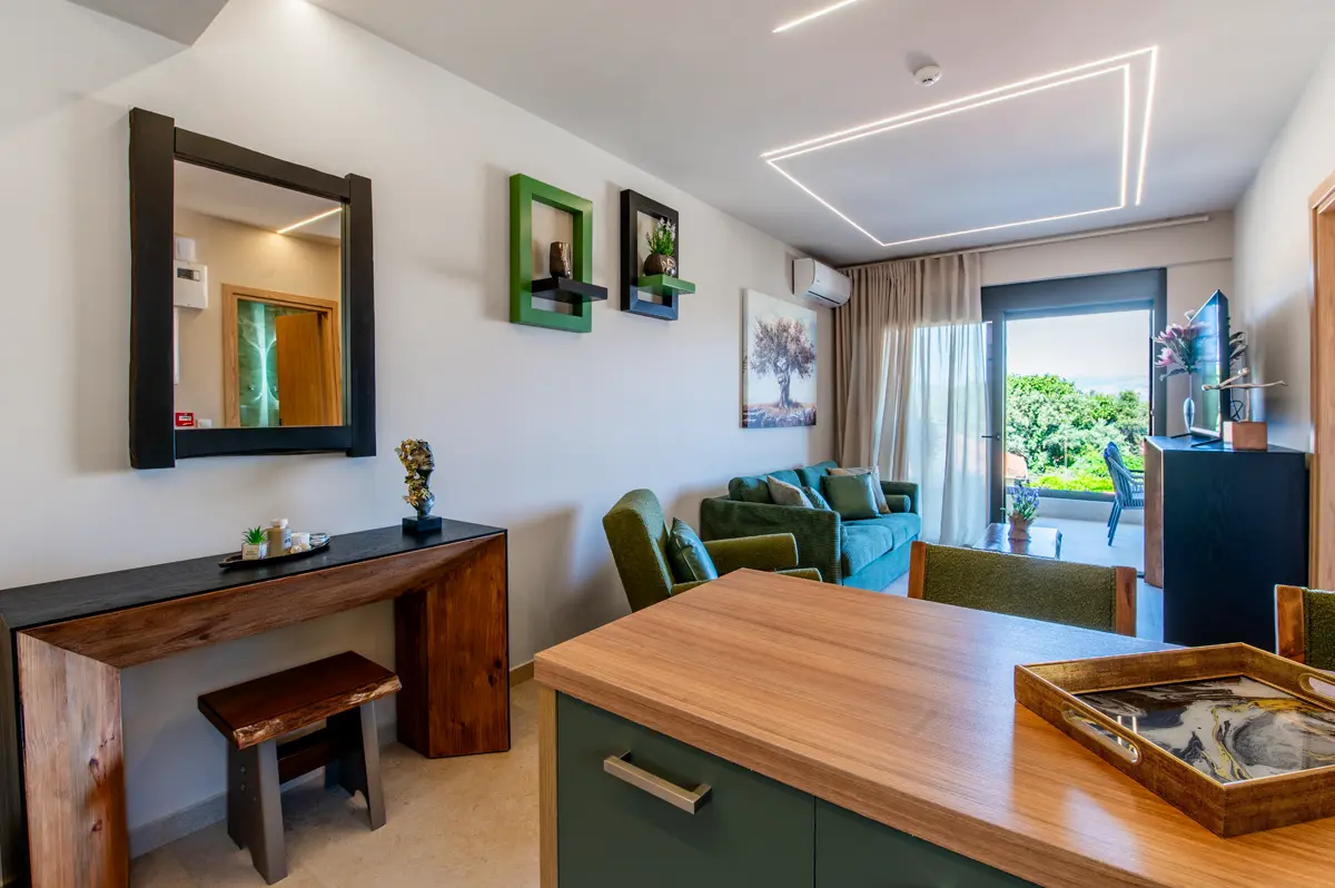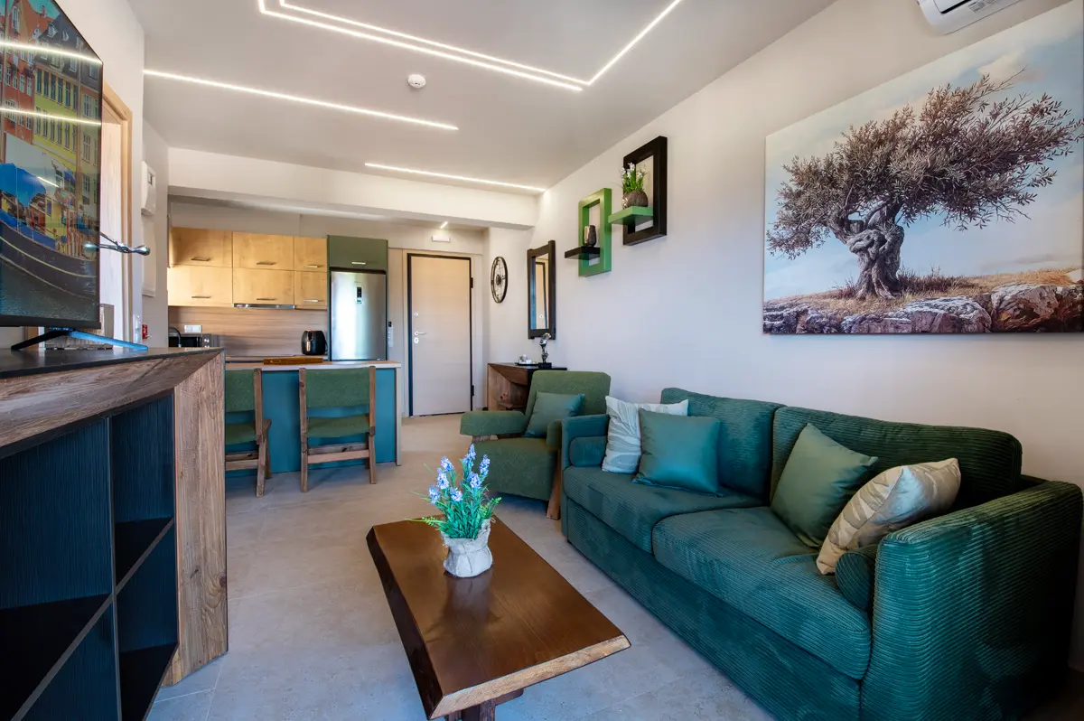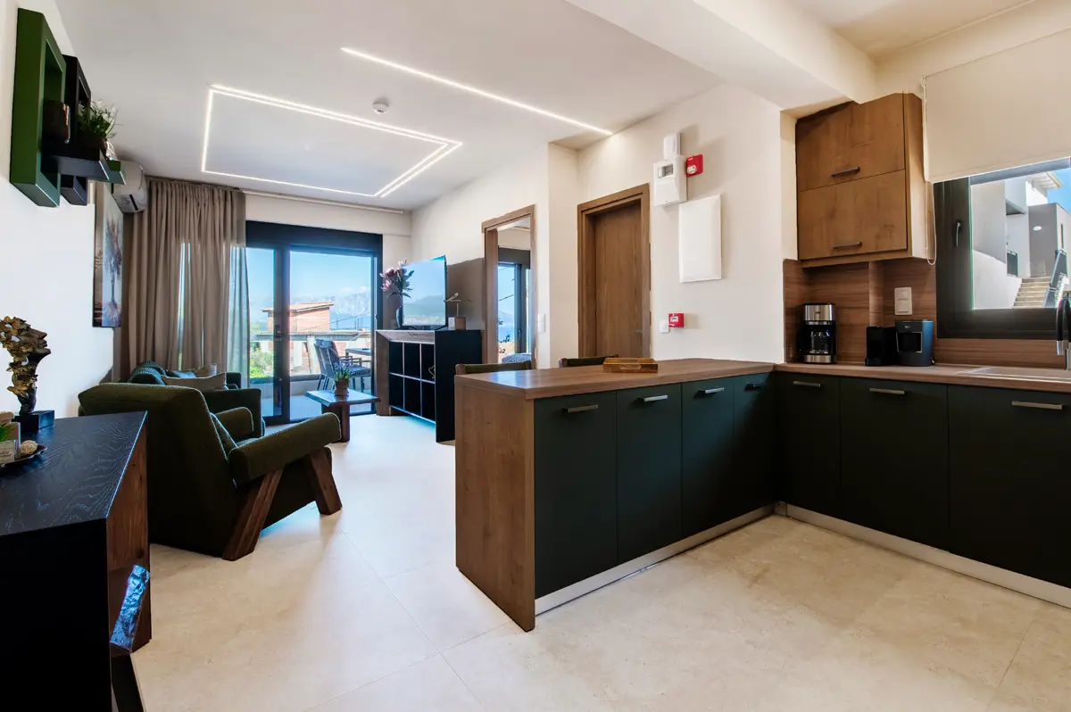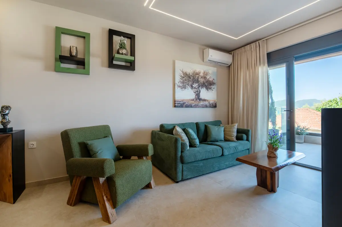 Το διαμέρισμα 6 είναι η επιτομή της πολυτέλειας και της άνεσης στην όμορφη Λευκάδα. Mε έκταση 50 τ.μ., είναι σχεδιασμένη για να προσφέρει μια μοναδική εμπειρία διαμονής. Διαθέτει ένα υπνοδωμάτιο με άνετο διπλό κρεβάτι, ιδανικό για χαλάρωση και ξεκούραση. Οι επισκέπτες θα απολαύσουν ένα ευρύχωρο σαλόνι που προσφέρει τον ιδανικό χώρο για στιγμές χαλάρωσης και ηρεμίας. Η πλήρως εξοπλισμένη κουζίνα σας επιτρέπει να δημιουργείτε και να απολαμβάνετε τα γεύματά σας όπως στο σπίτι σας. Το κατάλυμα διαθέτει κοινόχρηστη πισίνα, που αποτελεί το ιδανικό σημείο για να χαλαρώσετε και να απολαύσετε τον ήλιο.