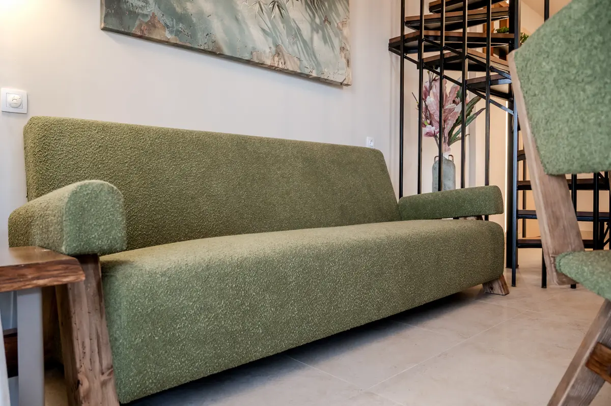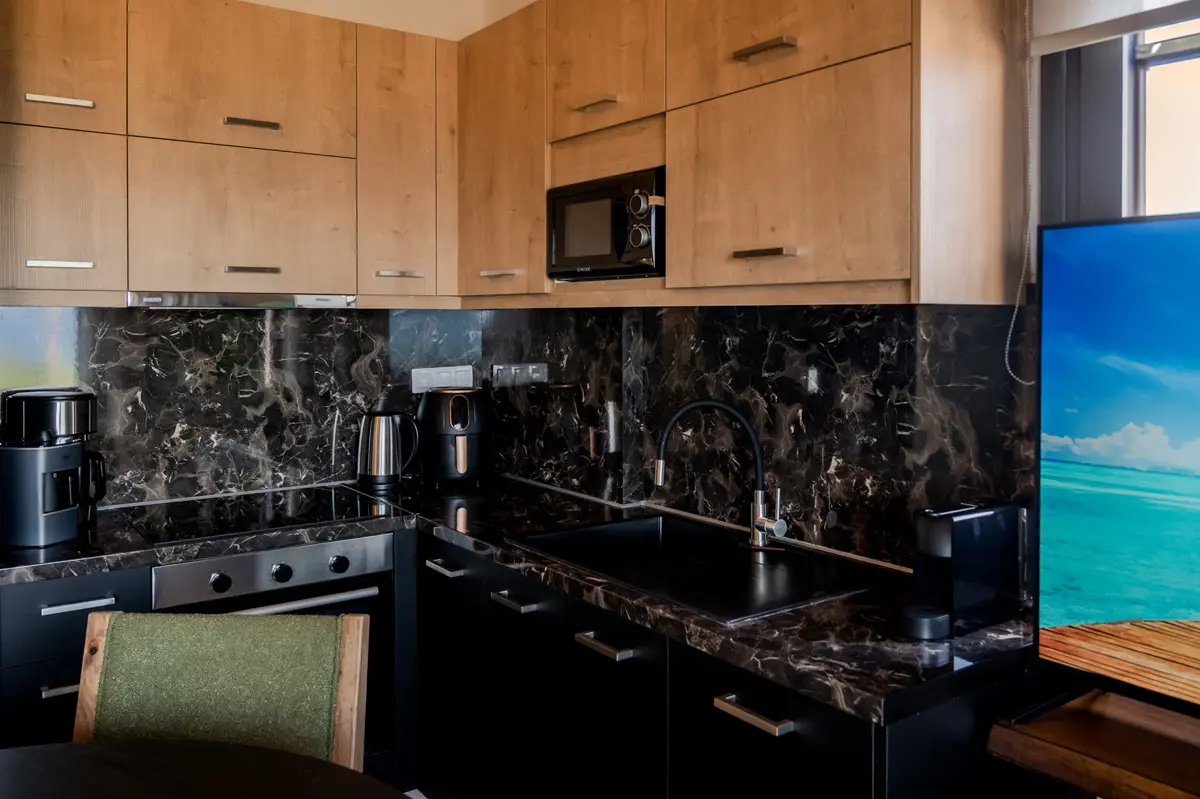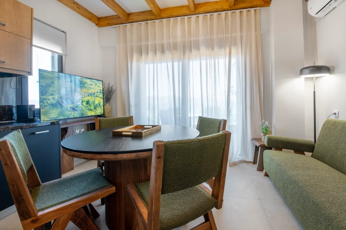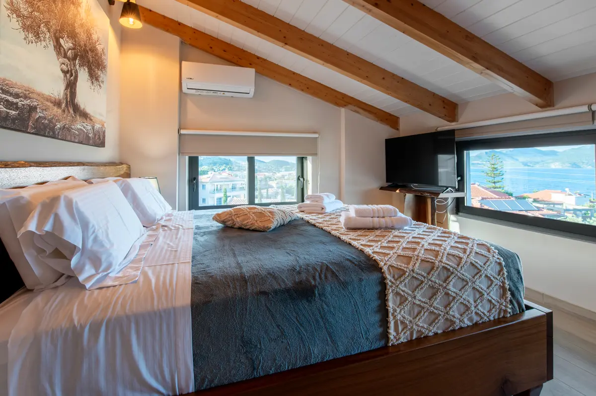 Η Σουίτα 5 είναι η επιτομή της πολυτέλειας και της άνεσης στην όμορφη Λευκάδα. Mε έκταση 90 τ.μ., είναι σχεδιασμένη για να προσφέρει μια μοναδική εμπειρία διαμονής. Η σουίτα βρίσκεται ακριβώς μπροστά στη θάλασσα, προσφέροντας εκπληκτική θέα στο απέραντο γαλάζιο από κάθε σημείο του δωματίου. Διαθέτει τρία υπνοδωμάτια, ιδανικά για χαλάρωση και ξεκούραση. Οι επισκέπτες θα απολαύσουν την άνεση δύο σύγχρονων μπάνιων, καθώς και ένα ευρύχωρο σαλόνι που προσφέρει τον ιδανικό χώρο για στιγμές χαλάρωσης και ηρεμίας. Η πλήρως εξοπλισμένη κουζίνα σας επιτρέπει να δημιουργείτε και να απολαμβάνετε τα γεύματά σας όπως στο σπίτι σας. Το κατάλυμα διαθέτει κοινόχρηστη πισίνα, που αποτελεί το ιδανικό σημείο για να χαλαρώσετε και να απολαύσετε τον ήλιο.