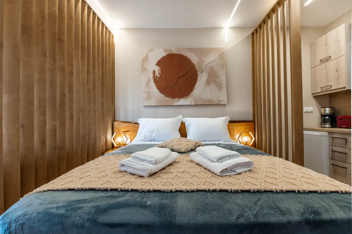 To Studio 7 είναι η επιτομή της πολυτέλειας και της άνεσης στην όμορφη Λευκάδα. Mε έκταση 26 τ.μ., είναι σχεδιασμένη για να προσφέρει μια μοναδική εμπειρία διαμονής. Διαθέτει ένα υπνοδωμάτια με άνετο διπλό κρεβάτι, ιδανικό για χαλάρωση και ξεκούραση. Οι επισκέπτες θα απολαύσουν την άνεση του ιδιωτικού μπάνιου, καθώς και ένα σαλόνι που προσφέρει τον ιδανικό χώρο για στιγμές χαλάρωσης και ηρεμίας. Η πλήρως εξοπλισμένη κουζίνα σας επιτρέπει να δημιουργείτε και να απολαμβάνετε τα γεύματά σας όπως στο σπίτι σας. Το κατάλυμα διαθέτει κοινόχρηστη πισίνα, που αποτελεί το ιδανικό σημείο για να χαλαρώσετε και να απολαύσετε τον ήλιο.