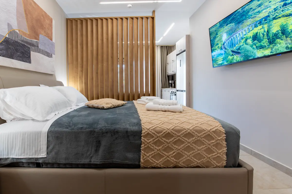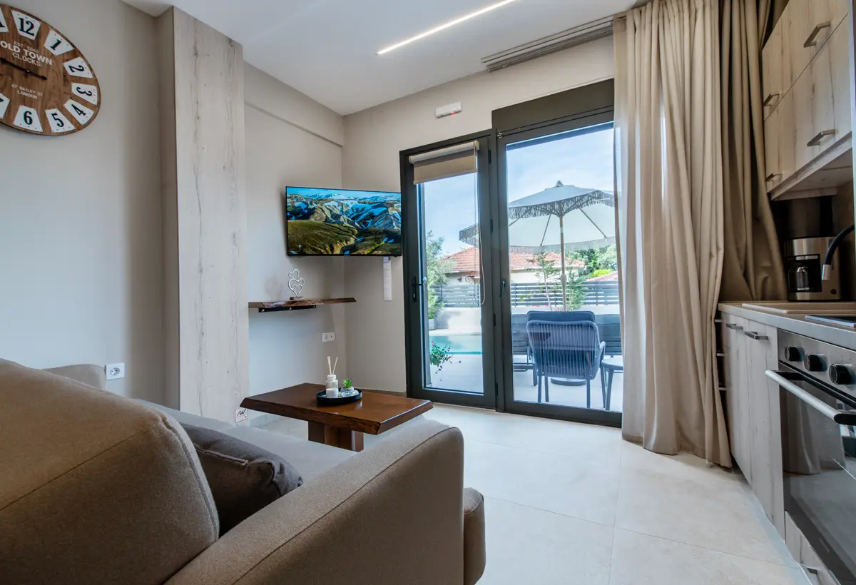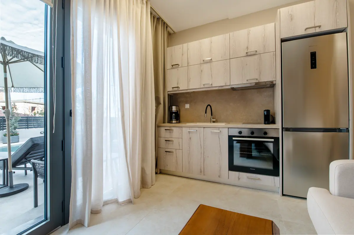 To Studio 8 είναι η επιτομή της πολυτέλειας και της άνεσης στην όμορφη Λευκάδα. Mε έκταση 27 τ.μ., είναι σχεδιασμένη για να προσφέρει μια μοναδική εμπειρία διαμονής. Διαθέτει ένα υπνοδωμάτια με άνετο διπλό κρεβάτι, ιδανικό για χαλάρωση και ξεκούραση. Οι επισκέπτες θα απολαύσουν την άνεση του ιδιωτικού μπάνιου, καθώς και ένα σαλόνι που προσφέρει τον ιδανικό χώρο για στιγμές χαλάρωσης και ηρεμίας. Η πλήρως εξοπλισμένη κουζίνα σας επιτρέπει να δημιουργείτε και να απολαμβάνετε τα γεύματά σας όπως στο σπίτι σας. Το κατάλυμα διαθέτει κοινόχρηστη πισίνα, που αποτελεί το ιδανικό σημείο για να χαλαρώσετε και να απολαύσετε τον ήλιο.