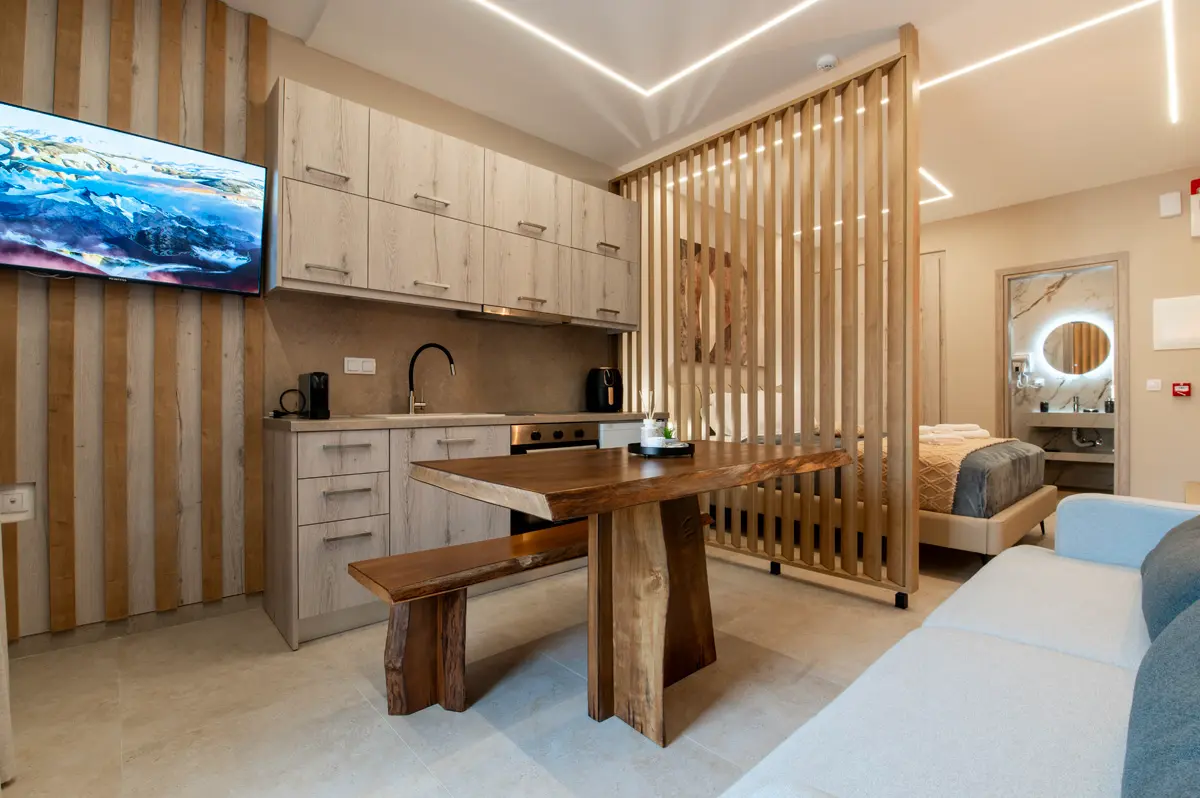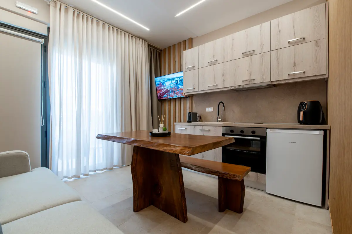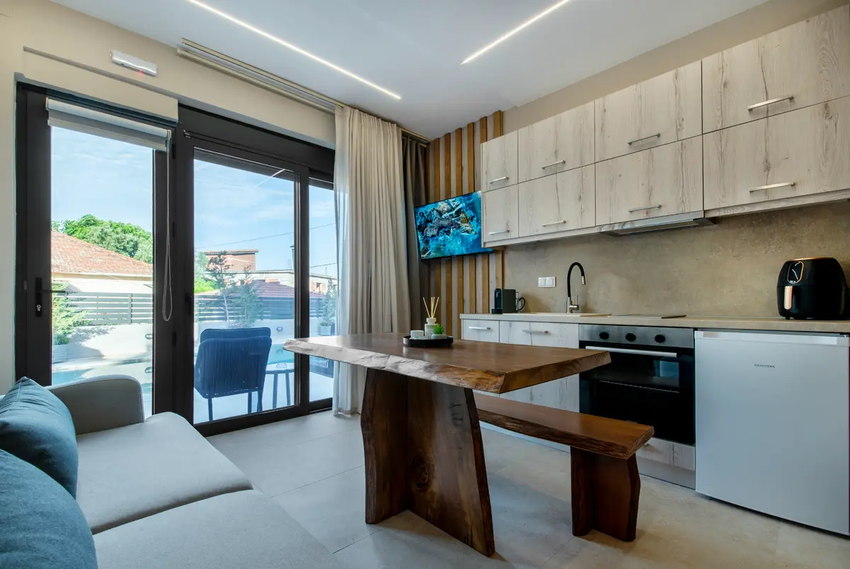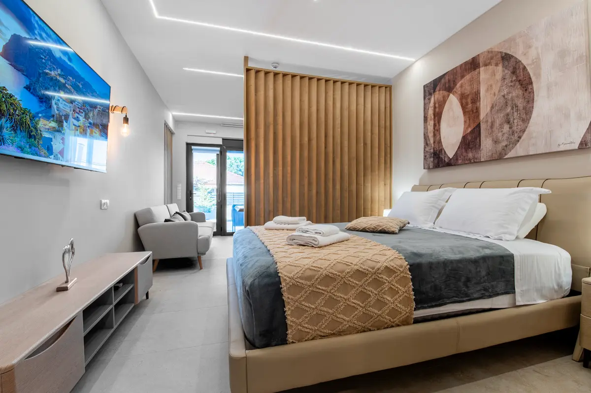 To Studio 9 είναι η επιτομή της πολυτέλειας και της άνεσης στην όμορφη Λευκάδα. Mε έκταση 28 τ.μ., είναι σχεδιασμένη για να προσφέρει μια μοναδική εμπειρία διαμονής. Διαθέτει ένα υπνοδωμάτια με άνετο διπλό κρεβάτι, ιδανικό για χαλάρωση και ξεκούραση. Οι επισκέπτες θα απολαύσουν την άνεση του ιδιωτικού μπάνιου, καθώς και ένα σαλόνι που προσφέρει τον ιδανικό χώρο για στιγμές χαλάρωσης και ηρεμίας. Η πλήρως εξοπλισμένη κουζίνα σας επιτρέπει να δημιουργείτε και να απολαμβάνετε τα γεύματά σας όπως στο σπίτι σας. Το κατάλυμα διαθέτει κοινόχρηστη πισίνα, που αποτελεί το ιδανικό σημείο για να χαλαρώσετε και να απολαύσετε τον ήλιο.