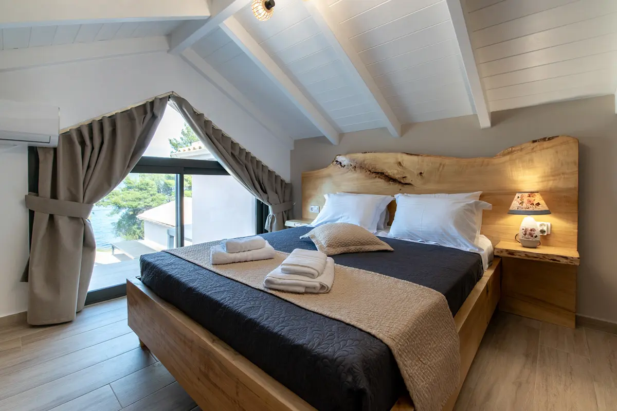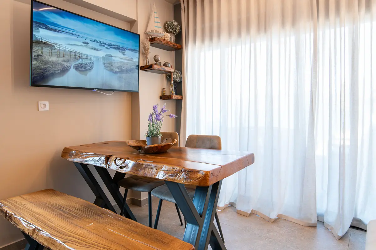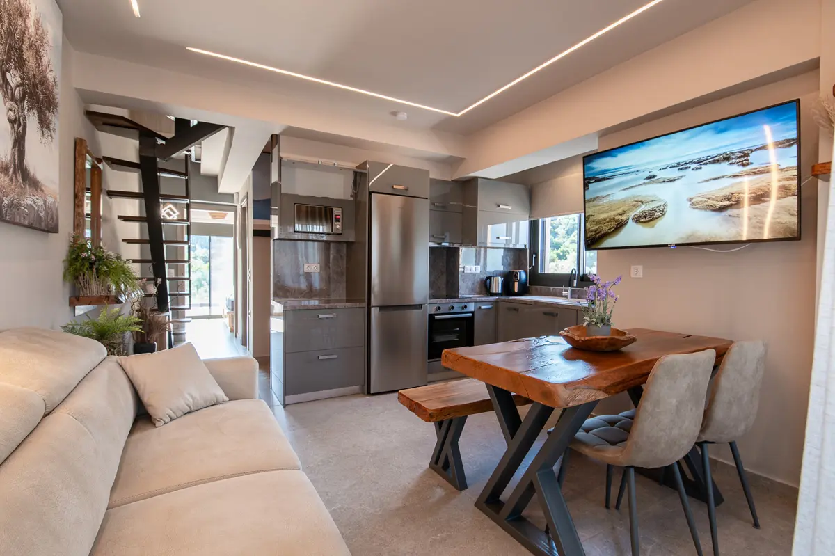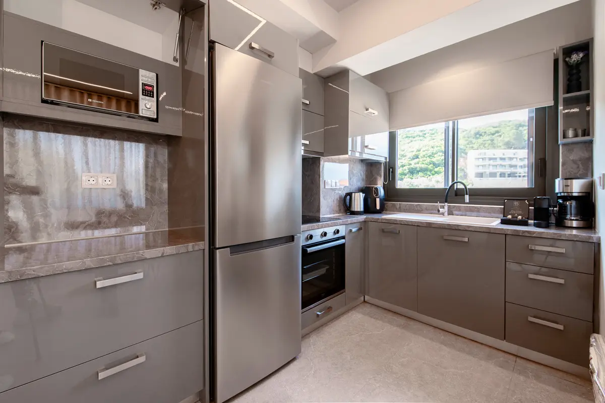 Η Σουίτα 4 είναι η επιτομή της πολυτέλειας και της άνεσης στην όμορφη Λευκάδα. Mε έκταση 92 τ.μ., είναι σχεδιασμένη για να προσφέρει μια μοναδική εμπειρία διαμονής. Η σουίτα βρίσκεται ακριβώς μπροστά στη θάλασσα, προσφέροντας εκπληκτική θέα στο απέραντο γαλάζιο από κάθε σημείο του δωματίου. Διαθέτει τρία υπνοδωμάτια, ιδανικά για χαλάρωση και ξεκούραση. Οι επισκέπτες θα απολαύσουν την άνεση δύο σύγχρονων μπάνιων, καθώς και ένα ευρύχωρο σαλόνι που προσφέρει τον ιδανικό χώρο για στιγμές χαλάρωσης και ηρεμίας. Η πλήρως εξοπλισμένη κουζίνα σας επιτρέπει να δημιουργείτε και να απολαμβάνετε τα γεύματά σας όπως στο σπίτι σας. Το κατάλυμα διαθέτει κοινόχρηστη πισίνα, που αποτελεί το ιδανικό σημείο για να χαλαρώσετε και να απολαύσετε τον ήλιο.